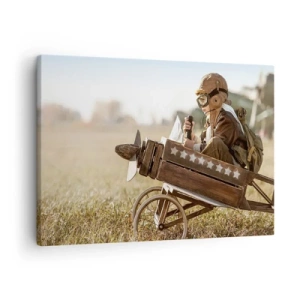 Canvas picture - A child in a toy airplane with a field in the background - 70x50cm - Take off for a Dream - Modern wall decoration for the living room and bedroom ARTTOR