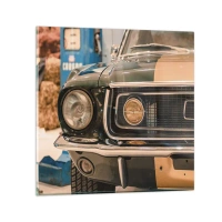 Wall clock - Clock on glass - Close-up of a classic American muscle car - 30x30cm - Encounter with the Legend - Modern wall decoration for the living room, kitchen, and bedroom ARTTOR