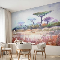 Glass picture - Watercolor savanna landscape with trees and vegetation - 70x50cm - Colour of Savannah - Modern wall decoration for the living room and bedroom ARTTOR