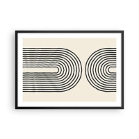 Glass picture - An abstract painting in black and white depicting arc-shaped lines. - 70x50cm - In One Moment… - Modern wall decoration for the living room and bedroom ARTTOR