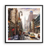 Poster in white frmae - New York - Colourful in Rain - 60x60 cm