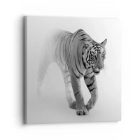 Glass picture - A tiger striding through the mist, with subtle blur in the background - 70x50cm - Crouching in Fog - Modern wall decoration for the living room and bedroom ARTTOR