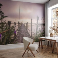Photo Wallpaper Standard Eco - wooden bridge against a cloudy sky - 100x70cm - Peace and Quiet of Asia - Modern wall decoration for the living room and bedroom ARTTOR