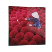 Wall clock - Clock on glass - Drying red incense sticks in a traditional field - 30x30cm - In the Rice Field - Modern wall decoration for the living room, kitchen, and bedroom ARTTOR
