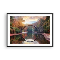 Glass picture - A stone bridge reflected in a lake amidst an autumn forest - 70x50cm - On the Other Side of a Mirror - Modern wall decoration for the living room and bedroom ARTTOR