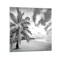 Wall clock - Clock on glass - Beach with palm trees in black and white - 30x30cm - When You Miss Loneliness… - Modern wall decoration for the living room, kitchen, and bedroom ARTTOR