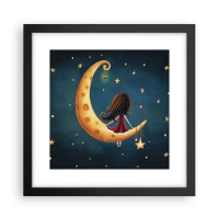 Wall clock - Clock on glass - A girl sitting on the moon in a fairy-tale setting - 30x30cm - Once Upon a Time… - Modern wall decoration for the living room, kitchen, and bedroom ARTTOR