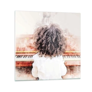 Wall clock - Clock on glass - A child playing the piano, seen from behind in an artistic style. - 30x30cm - In a New World - Modern wall decoration for the living room, kitchen, and bedroom ARTTOR