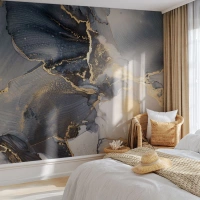 Glass picture - Dark abstraction with a marble effect and gold veins - 70x50cm - Life of a Stone - Modern wall decoration for the living room and bedroom ARTTOR