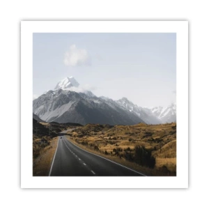 Poster in white frmae - Road to the Heart of the Mountains - 50x50 cm