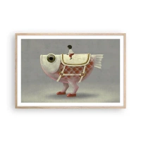 Poster in light oak frame - Fish Jockey - 100x70 cm