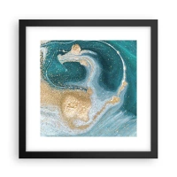 Poster in black frame - Swirl of Gold and Turquiose - 30x30 cm