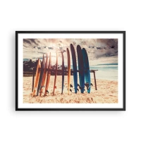 Glass picture - Colorful surfboards lined up on the beach at sunset - 70x50cm - Goodnight, See You Tomorrow - Modern wall decoration for the living room and bedroom ARTTOR