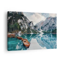 Canvas picture - A lake with boats surrounded by mountains - 70x50cm - We Will Show You Beauty - Modern wall decoration for the living room and bedroom ARTTOR