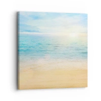 Wall clock - Clock on glass - A quiet beach with azure sea and clear sky - 30x30cm - The Big Blue - Modern wall decoration for the living room, kitchen, and bedroom ARTTOR