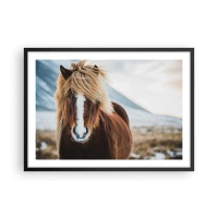 Glass picture - A horse against a mountain landscape in winter - 70x50cm - Can You Feel the Freedom? - Modern wall decoration for the living room and bedroom ARTTOR