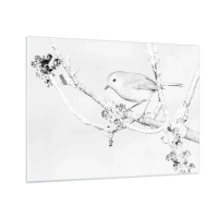Glass picture - A bird perched on a branch in a monochromatic winter scene. - 70x50cm - Winter Morning - Modern wall decoration for the living room and bedroom ARTTOR