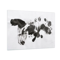 Glass picture - Abstract black spot and brush strokes on a white background - 70x50cm - A Method in Madness? - Modern wall decoration for the living room and bedroom ARTTOR