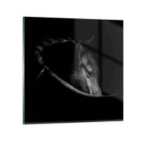 Wall clock - Clock on glass - Portrait of a black horse against a deep, dark background - 30x30cm - Black Prince - Modern wall decoration for the living room, kitchen, and bedroom ARTTOR