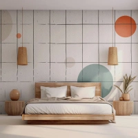 Glass picture - Colorful circles on a geometric grid of thin lines - 70x50cm - Imprisoned. Us or Them? - Modern wall decoration for the living room and bedroom ARTTOR