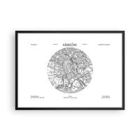 Glass picture - A map of Krakow in a black and white illustration style - 70x50cm - Anatomy of Crocow - Modern wall decoration for the living room and bedroom ARTTOR