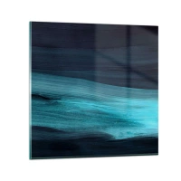 Wall clock - Clock on glass - Abstract streaks in turquoise and navy blue reminiscent of water - 30x30cm - Swim with the Flow - Modern wall decoration for the living room, kitchen, and bedroom ARTTOR