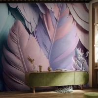 Photo Wallpaper Premium Canvas - Birdie Chic - Pastel, Feathers, Lightness - 300x210 cm
