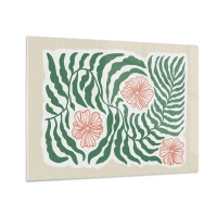 Glass picture - Green leaves and red flowers in a graphic arrangement - 70x50cm - Blossoming in Green - Modern wall decoration for the living room and bedroom ARTTOR