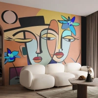 Photo Wallpaper Standard Eco - Abstract Cubist-style faces with flowers - 100x70cm - Rendez-vous Picasso Style - Modern wall decoration for the living room and bedroom ARTTOR