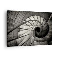 Canvas picture - Black and white spiral staircase in a modern style - 70x50cm - Up the Stairs and Down the Stairs - Modern wall decoration for the living room and bedroom ARTTOR