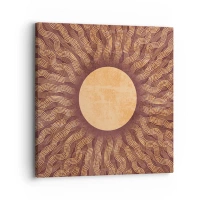 Canvas picture - Sunny pattern with rays on a background in shades of brown - 70x50cm - Sun Icon - Modern wall decoration for the living room and bedroom ARTTOR
