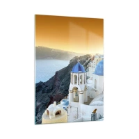 Glass picture - Santorini - Snuggling up to the Rocks - 50x70 cm