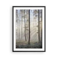 Poster in black frame - A foggy morning in the forest with rays of sunshine - 50x70cm - Fog Has Woken up Too - Modern wall decoration for the living room and bedroom ARTTOR