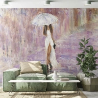 Custom Wallpaper Premium Canvas - In Liliac Rain - Woman, Fashion, Walk in the rain