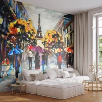 Photo Wallpaper Standard Eco - Autumn Paris in the rain with colorful umbrellas - 100x70cm - Especially Beautiful in Autumn - Modern wall decoration for the living room and bedroom ARTTOR