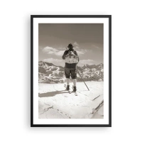 Poster in black frame - A retro-style skier with mountains in the background - 50x70cm - Mountains Are the Same - Modern wall decoration for the living room and bedroom ARTTOR