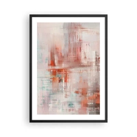 Poster in black frame - Abstract composition in shades of red and blue - 50x70cm - Foggy but Pink - Modern wall decoration for the living room and bedroom ARTTOR