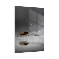 Poster in black frame - A houseboat surrounded by fog with birds against a dark background - 50x70cm - Shelter from the Rain - Modern wall decoration for the living room and bedroom ARTTOR