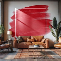 Photo Wallpaper Standard Eco - Red brush stroke on a white background in an artistic composition - 100x70cm - Without a Frame - Modern wall decoration for the living room and bedroom ARTTOR