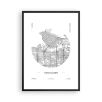 Poster in black frame - A minimalist black and white map of Vancouver - 50x70cm - Anatomy of Vancouver - Modern wall decoration for the living room and bedroom ARTTOR