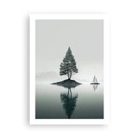 Poster in black frame - A lonely tree on an island with a reflection in the water - 50x70cm - Daydreaming - Modern wall decoration for the living room and bedroom ARTTOR