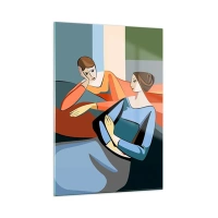 Poster in black frame - A modern illustration of two women in a cubist style. - 50x70cm - Time for Confession - Modern wall decoration for the living room and bedroom ARTTOR