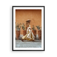 Poster in black frame - Stylish woman in a hat against a background of cacti - 50x70cm - Hippie Style - Modern wall decoration for the living room and bedroom ARTTOR