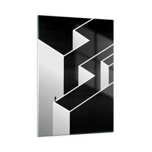 Poster in black frame - A minimalist maze in black and white - 50x70cm - Solitude at the Top - Modern wall decoration for the living room and bedroom ARTTOR