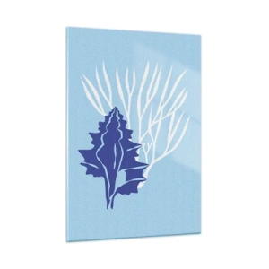 Poster in black frame - Nautical graphic of shells and coral on a blue background - 50x70cm - Leaf Forms - Modern wall decoration for the living room and bedroom ARTTOR