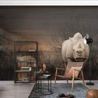 Custom Wallpaper Standard Eco - White against Nature - Rhinoceros, Animals, Africa