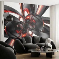Self-Adhesive Photo Wallpaper Deluxe Sticker - Movement in Graphite and Red - Abstraction, 3D, Piece - 500x350 cm
