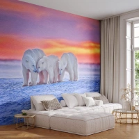 Photo Wallpaper Standard Eco - A family of polar bears against the backdrop of the Arctic West. - 100x70cm - Family Warmth Is Enough - Modern wall decoration for the living room and bedroom ARTTOR