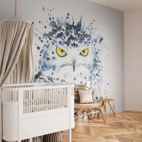 Photo Wallpaper Standard Eco - Watercolor owl with intense yellow eyes - 100x70cm - Straight in the Eyes - Modern wall decoration for the living room and bedroom ARTTOR