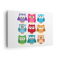 Canvas picture - Colorful illustrations of owls in a childlike style - 70x50cm - It Can Be Fun to Differ - Modern wall decoration for the living room and bedroom ARTTOR